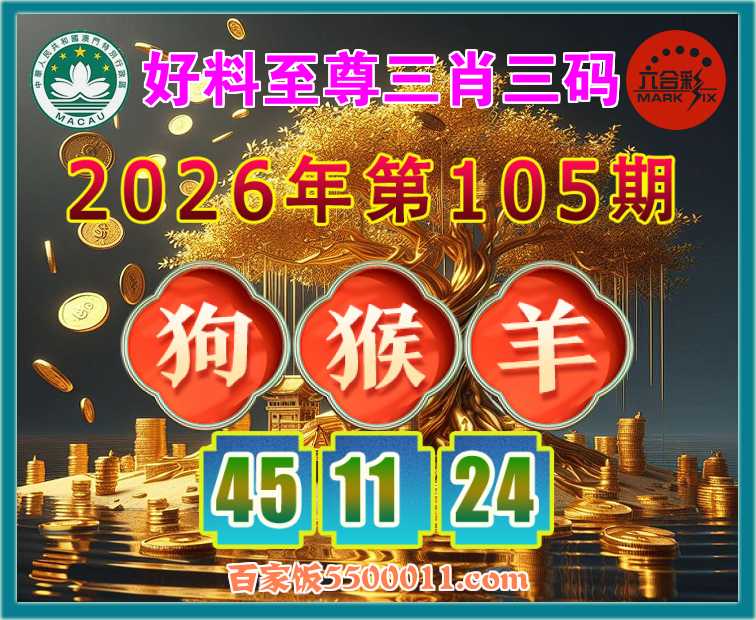 105期: 🧶『好料至尊』 🧶三肖三码🧶【狗猴羊】【45.11.24】开:00准